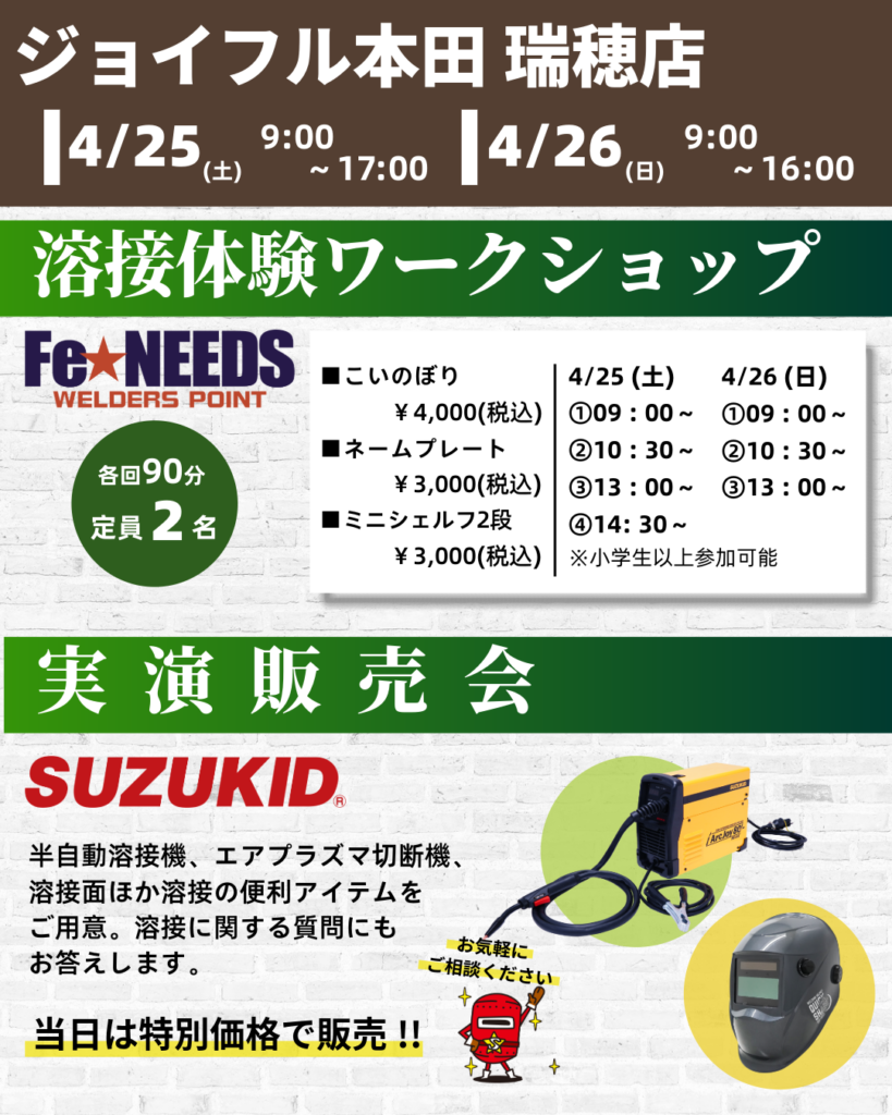 「SUZUKID × Fe★NEEDS 溶接ワークショップ」を開催いたします。